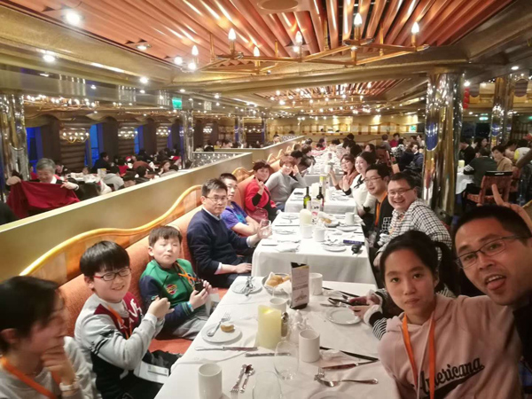 每次觀光員工還能夠帶家眷哦,小家眷王司理的孫女寧寧才1歲多,另有其余的君通下一代,巨細吃貨們不約而同的莫過于是吃吃吃的主題,一上船火伴們前去餐廳享用一頓豐厚的自助午飯,對我這個吃貨來講本次航程大的收成之一是海上超等美食這塊了,中西合璧的美食能夠24小時為咱們供給,讓咱們極大水平地休會到了中西餐的飲食文明差別!在這里,小編不得不提三樓的維斯塔餐廳和瑟瑞斯餐廳,滿盈著古典氣概,和家人一路在這幽雅的情況頂用餐真的棒極了,百般甜品、小盆友們愛的香草巧克力味的冰淇淋等,不管你的味蕾有多抉剔、總有一款合適你,: