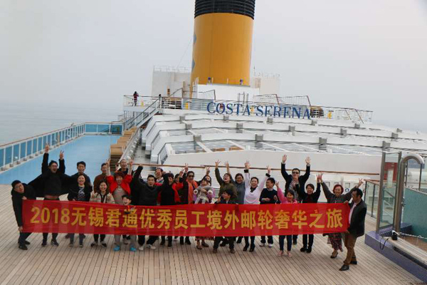 2018年2月6號,無錫的早晨寒意正濃,但涓滴擋不住君通家人們出游的熱忱,在康總的率領下火伴們早早來到了上海吳淞口國際郵輪船埠,踏上了鐘情已久的5天4晚的賽琳娜號胡想之旅,“歡愉任務,幸運糊口”一向是咱們君通的傳統,一年的辛勞與盡力在現在化作了幸運與甜美,隨著家人們一路看過千山和萬水,相逢夸姣與幸運,裝載著胡想向歡愉動身!