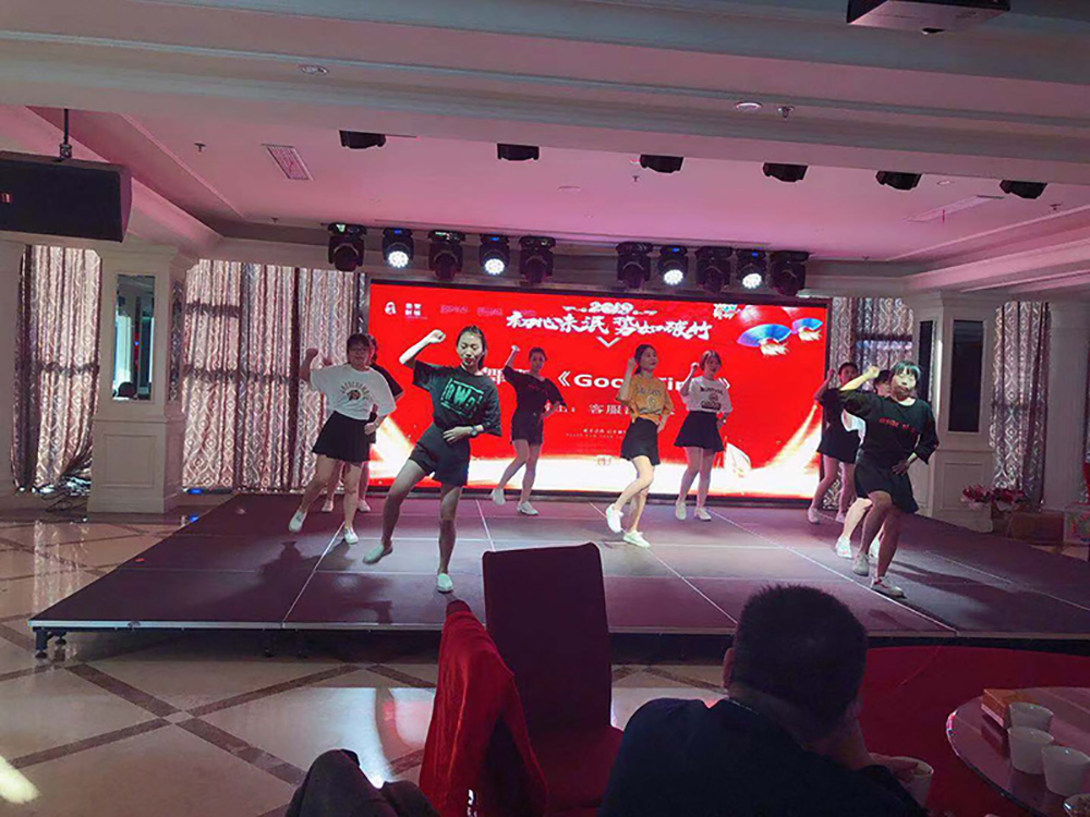 文藝扮演中交叉停止了你來比劃我來猜、搶凳子,數字炸彈等游戲,全部員工主動到場,全部氛圍強烈熱鬧歡娛。咱們客服部也扮演了一個活氣四射的跳舞節目,博得臺下一片強烈熱鬧的掌聲。